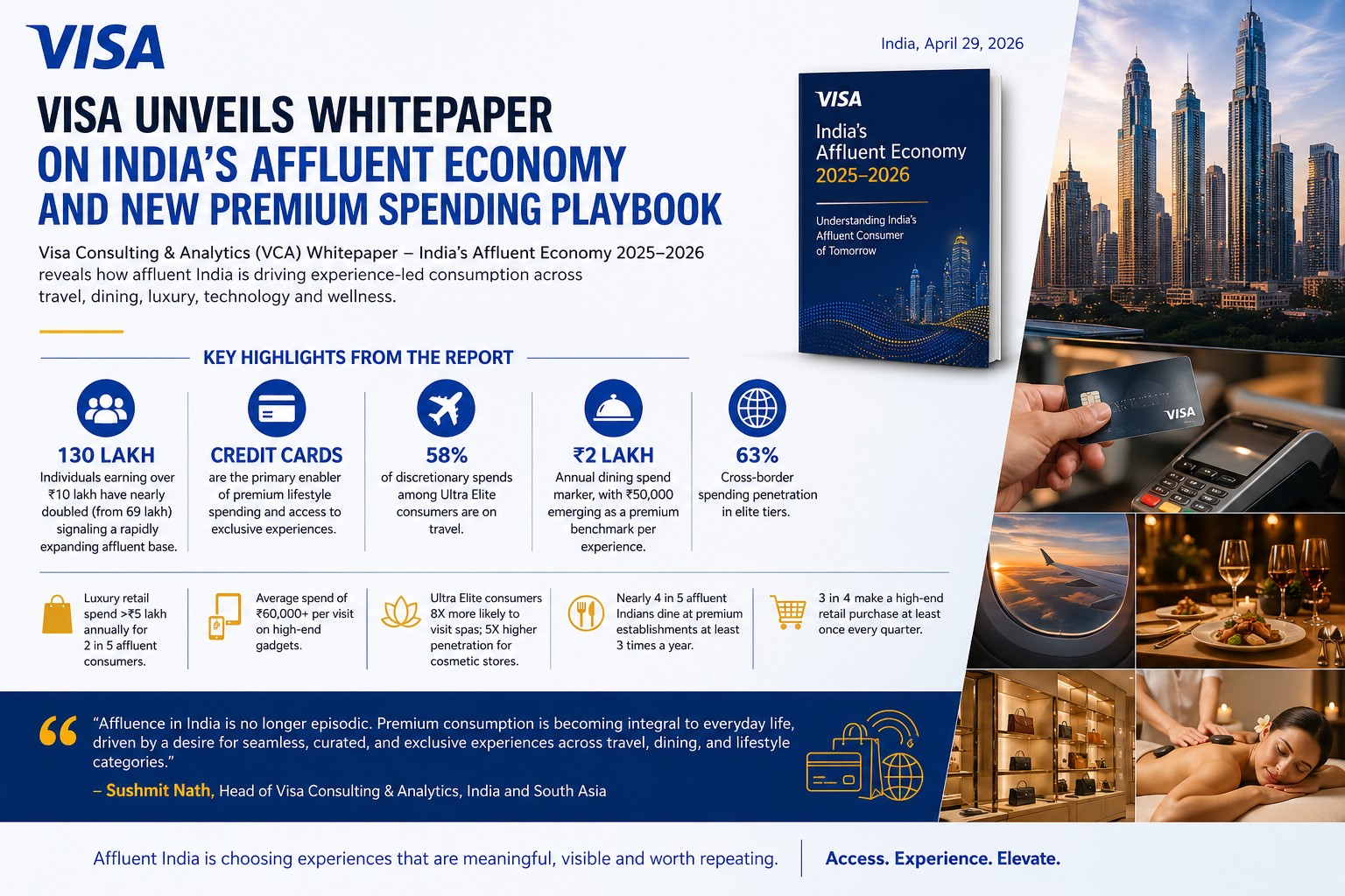 New Delhi: India’s affluent population is rapidly expanding and reshaping consumption trends, with a strong tilt towards travel, premium dining and curated lifestyle experiences, according to a new whitepaper released by Visa Inc..